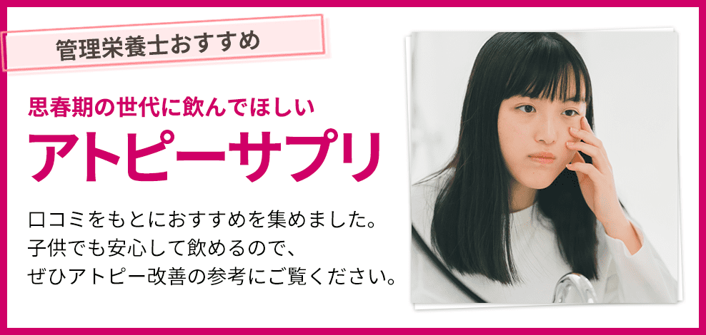 併せて、かゆみによる睡眠不足が肌のターンオーバーを阻害する要因にもなりますので、睡眠の質を高め集中力もアップさせてくれる「休息成分」や、かゆみを内側からケアしてくれる乳酸菌も複合している、「アトピーのお悩みをトータルケアしているサプリメント」を選ぶといいでしょう。